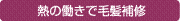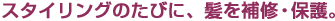 熱に反応するヒートプロテインが、 アイロンやホットカーラーで加温され ることによって、荒れた キューティクルをケア&コート。 うるおい成分を閉じ込め、使い続けるほど髪のコンディションがアップ します。「つけるだけ」の手軽さが 魅力です。 |